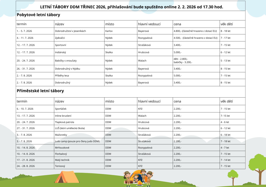 Přihlašování: https://www.ddmtrinec.cz/tabory